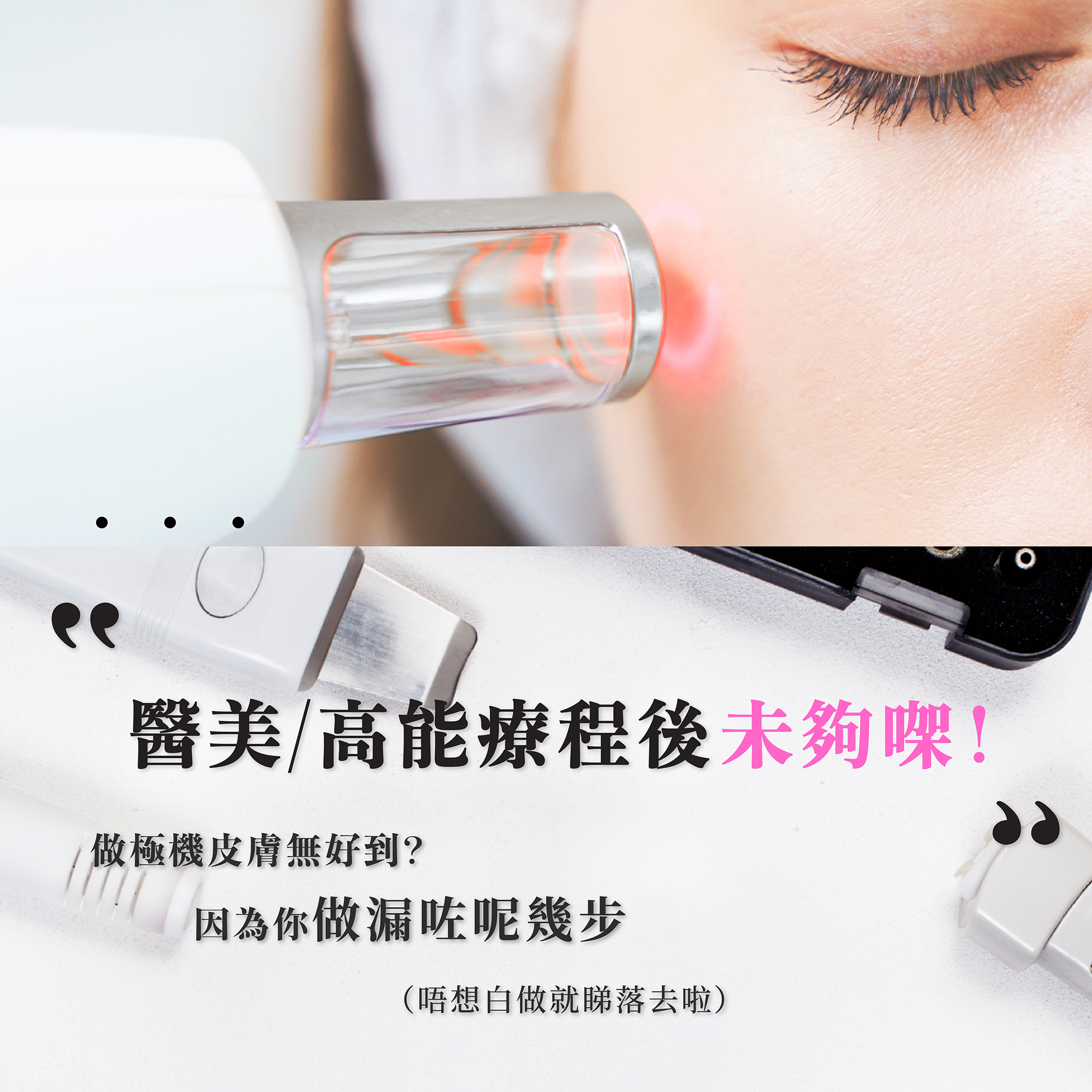 醫美/高能量療程多遵循「先破壞、再建設」原理,療程後7-14天皮膚角質層變薄,易出現乾敏泛紅,正值最脆弱敏感的復元階段,亦是肌膚修復與吸收力巔峰期,護理不當,令療程效果事半功倍,而護理得當,不但能加速修復,更可將療程效果提升至最佳狀態,把握滲透率最高「黃金7日」,配合身土特別為醫美後肌膚打造的做機必備組合,加速細胞修復,極致發揮美容效能