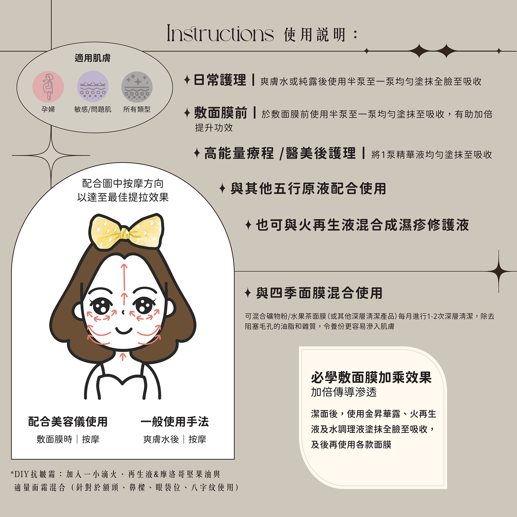 *與其他五行原液配合使用 / 四季面膜混合使用