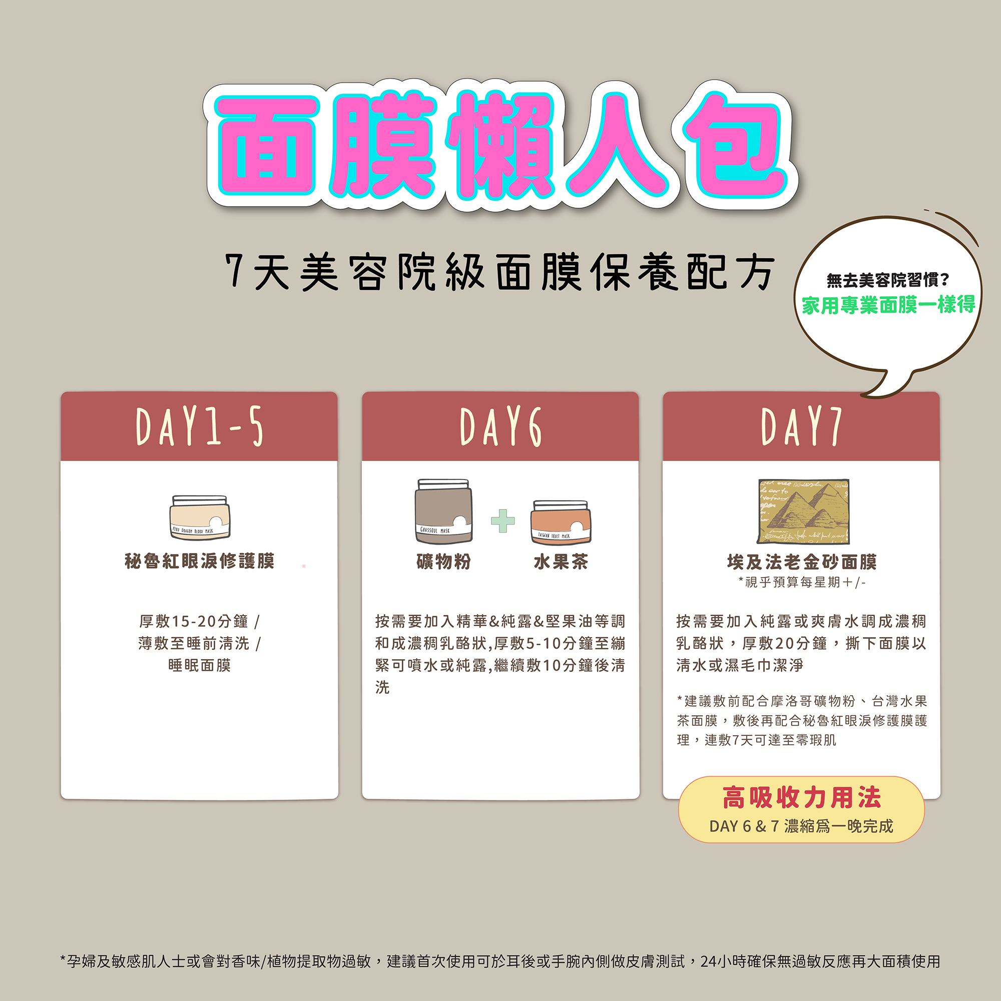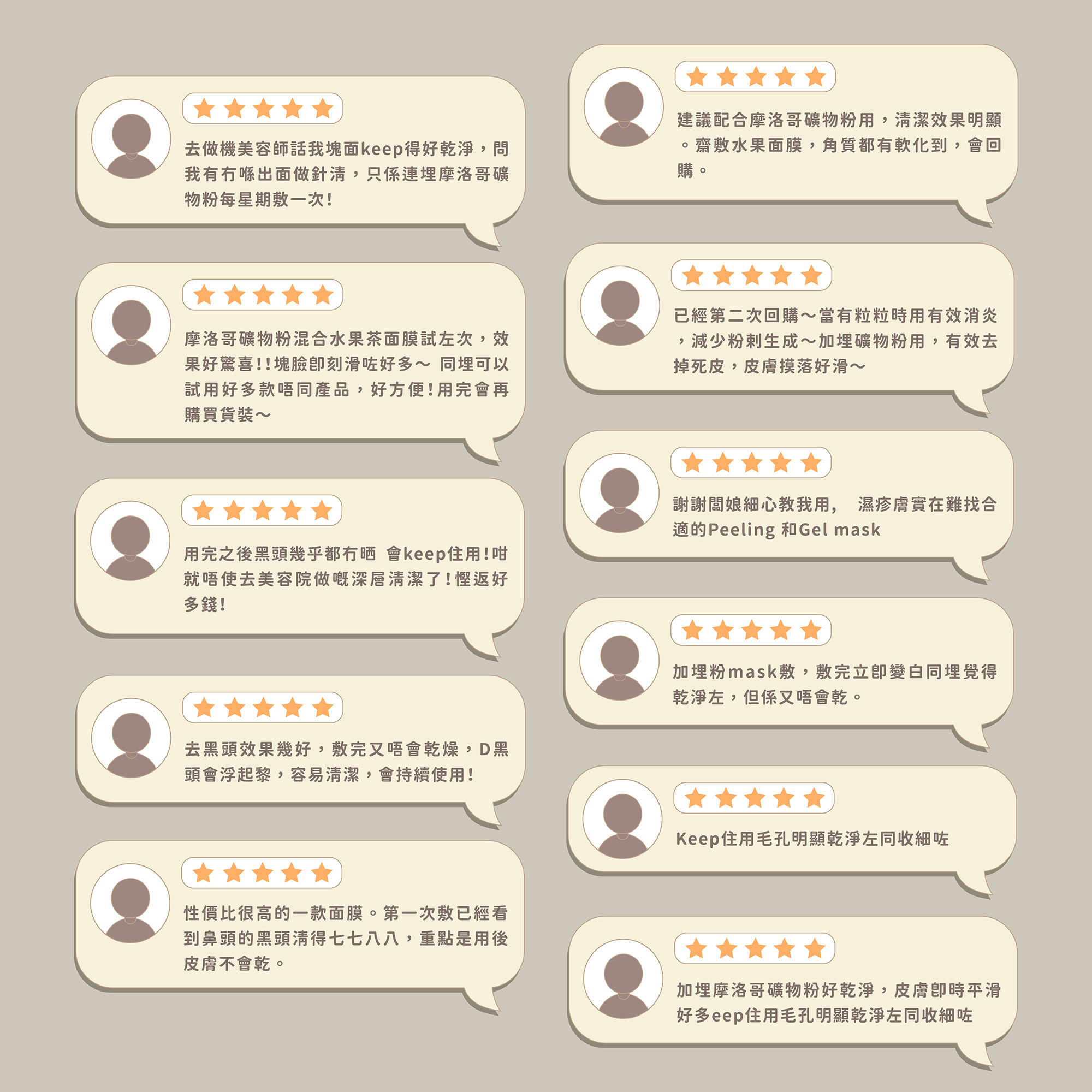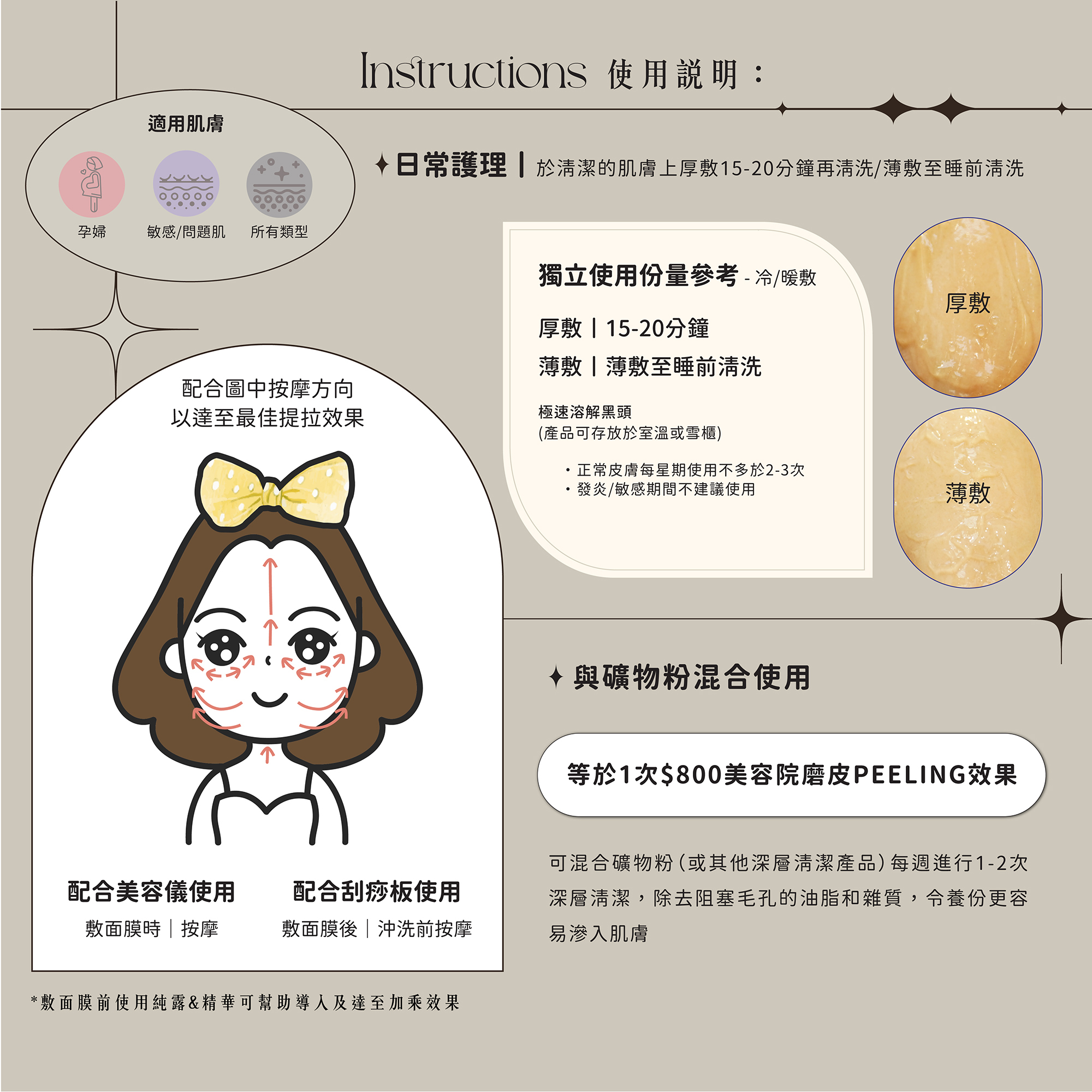 *每星期1-2次,與摩洛哥礦物粉面膜混合使用效果更佳