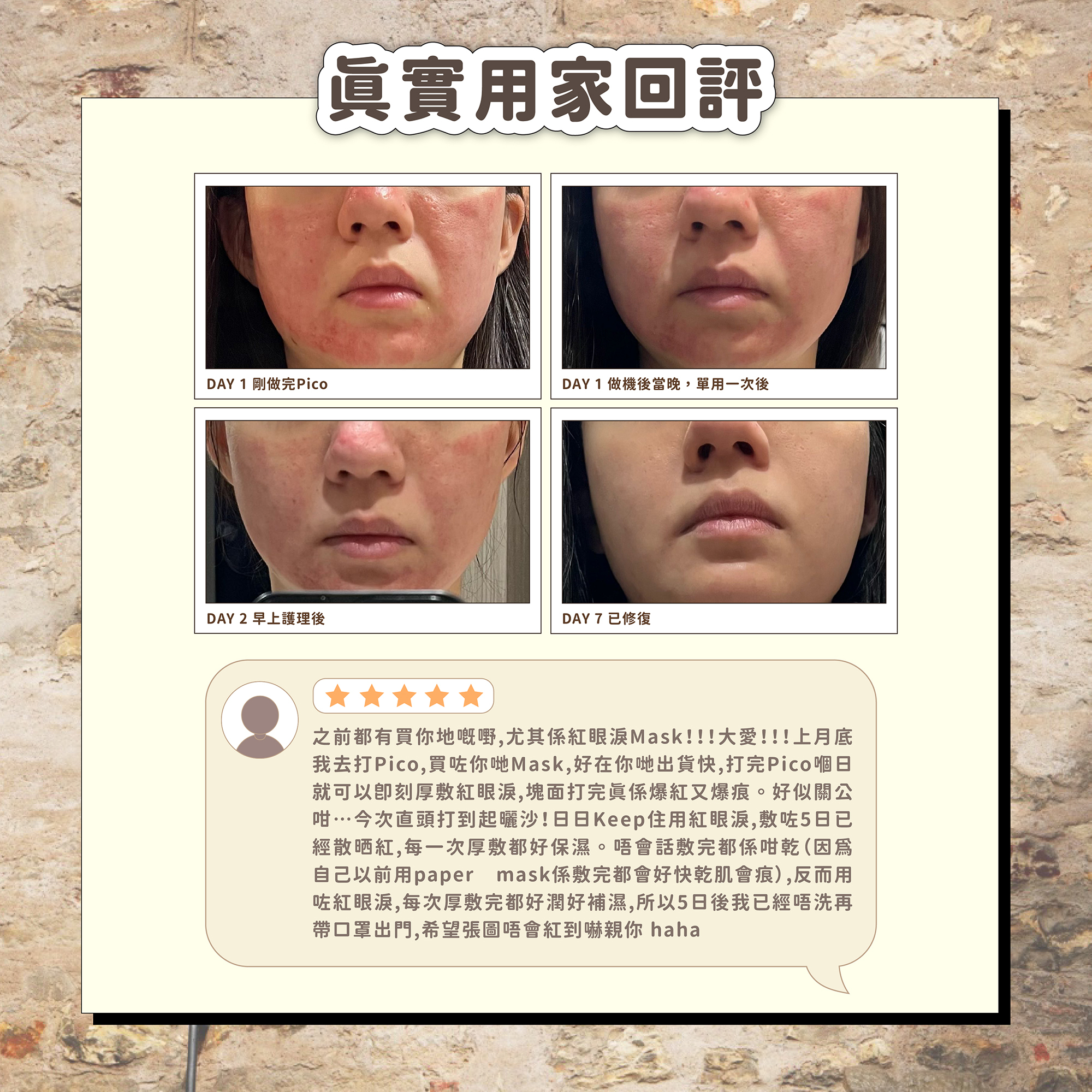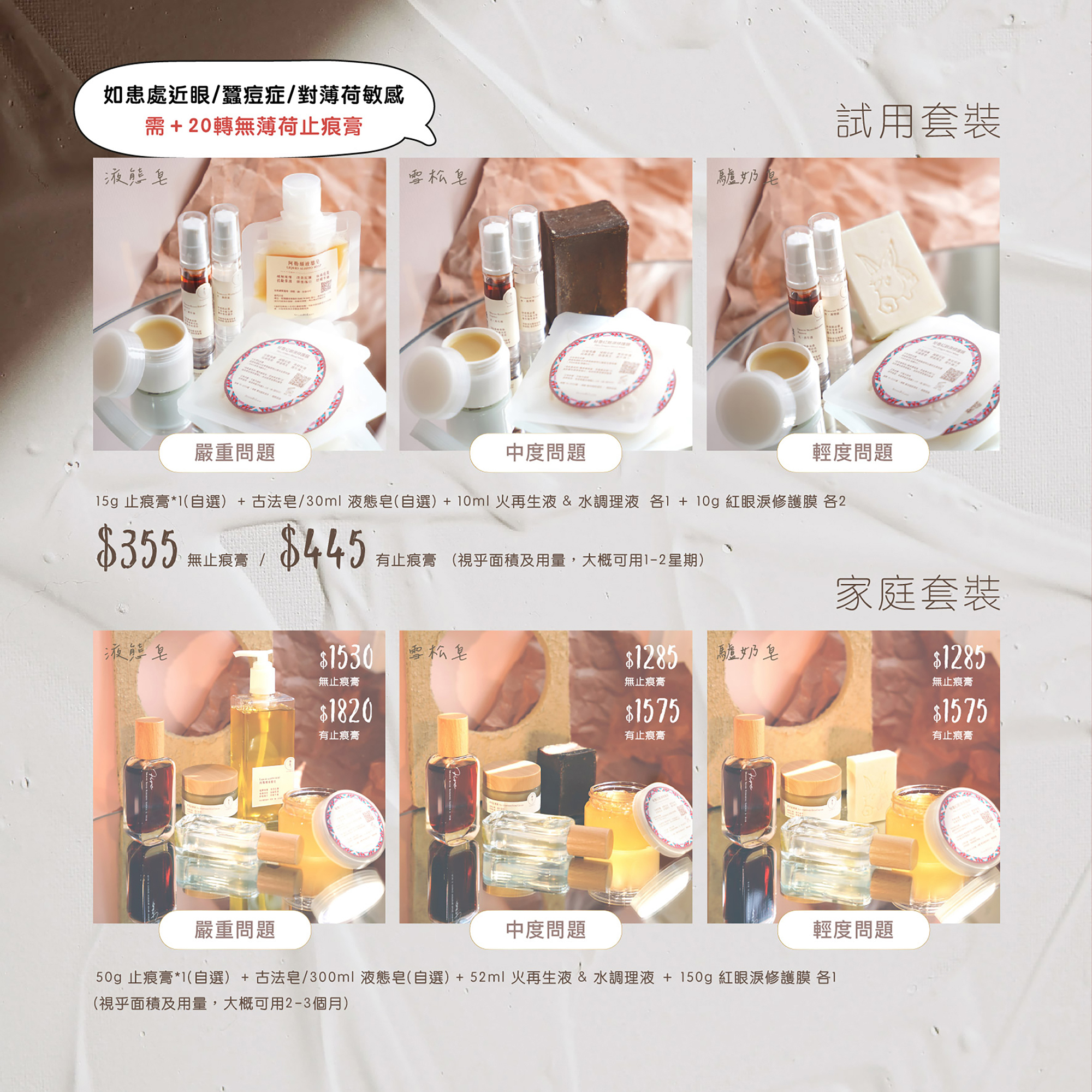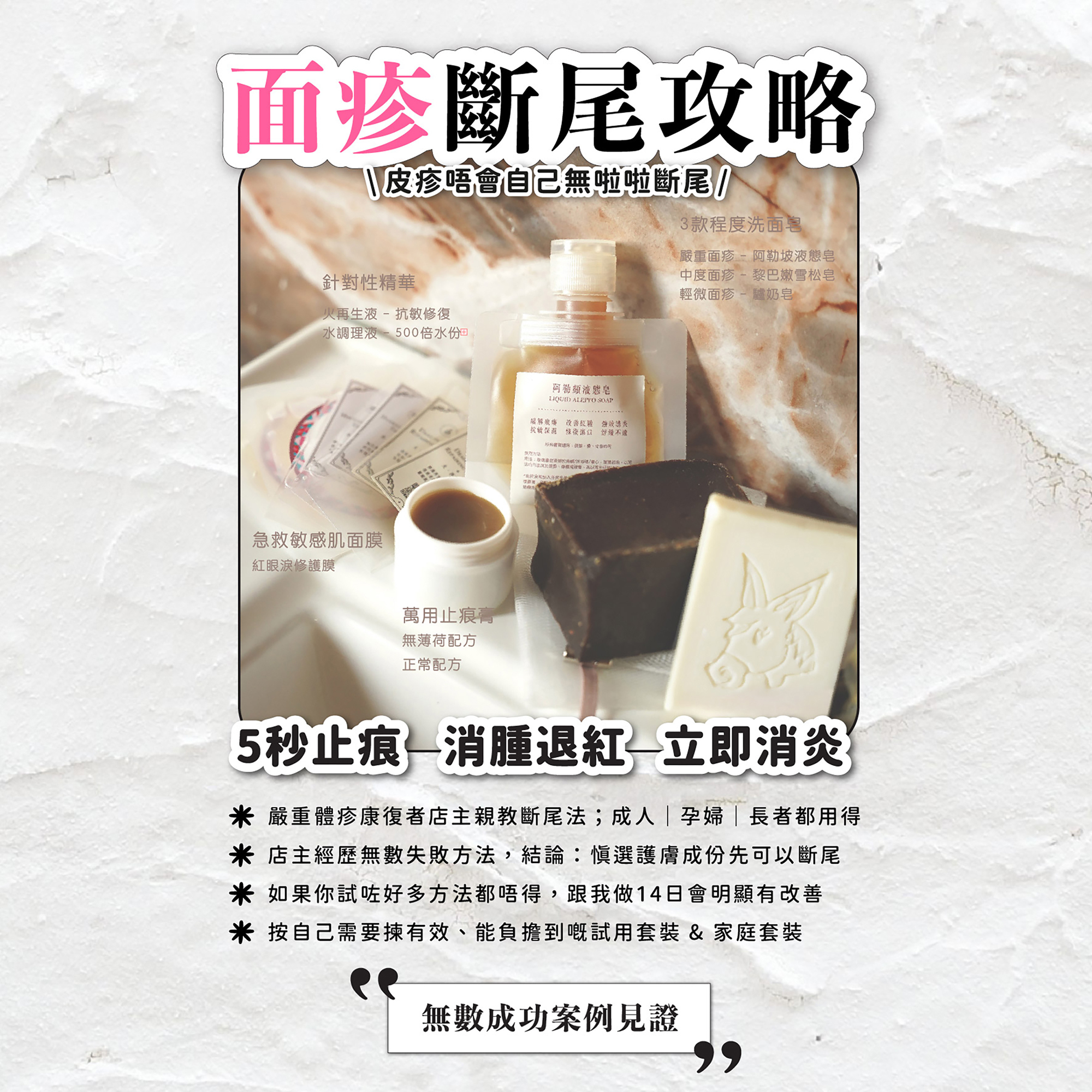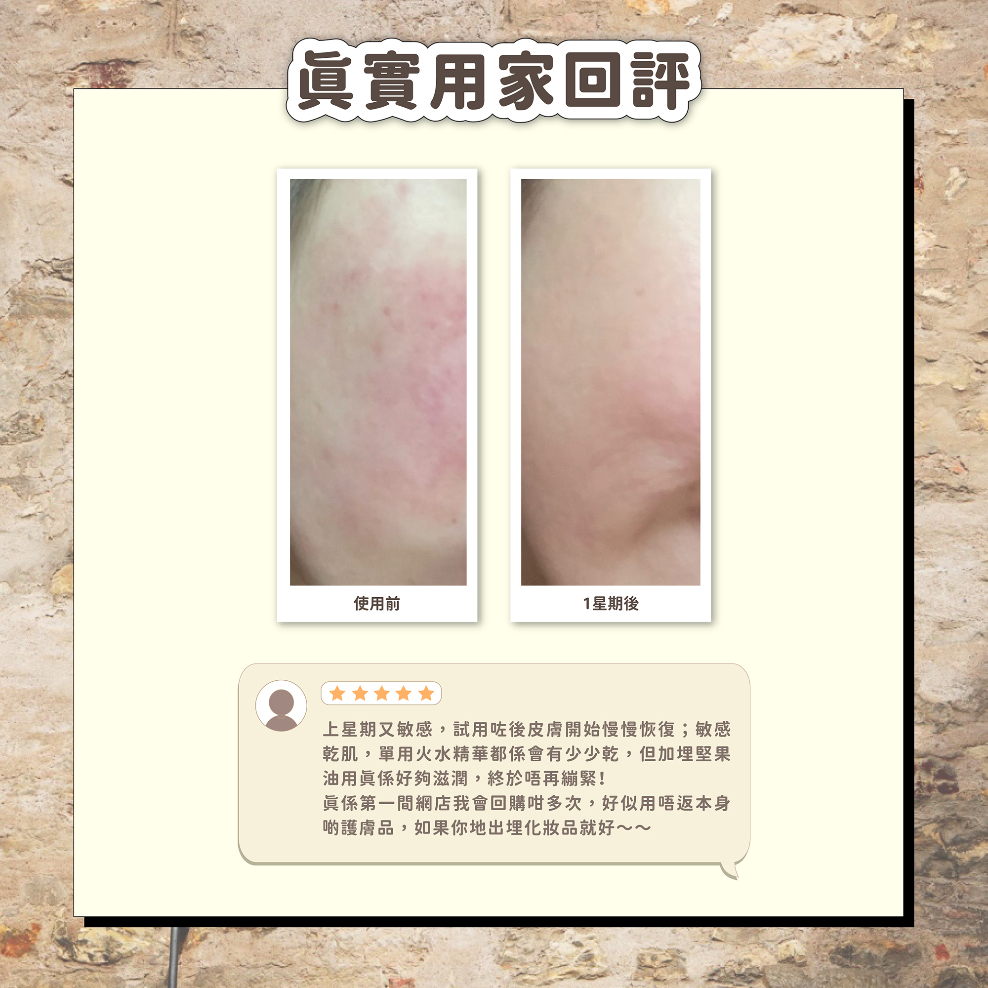 *客人請於面部無疹/較少皮疹位置小面積試用並觀察24小時, 確認沒有過敏反應才於全面使用,建議分開幾天試用1-2樣產品,減少對皮膚做成負擔