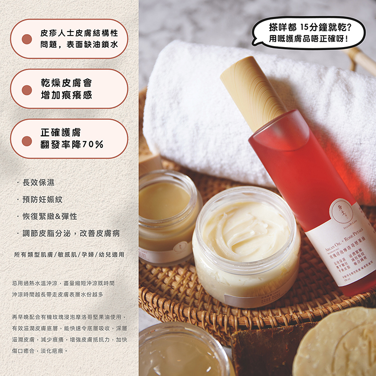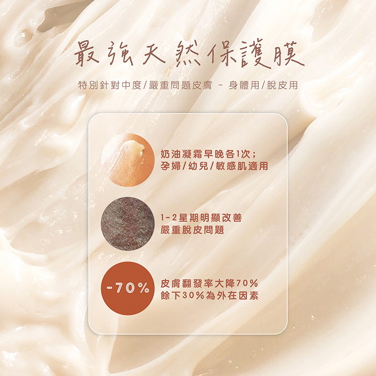 *乾到有白色皮屑需配合奶油凝霜 - 長效滋潤、最強保護膜