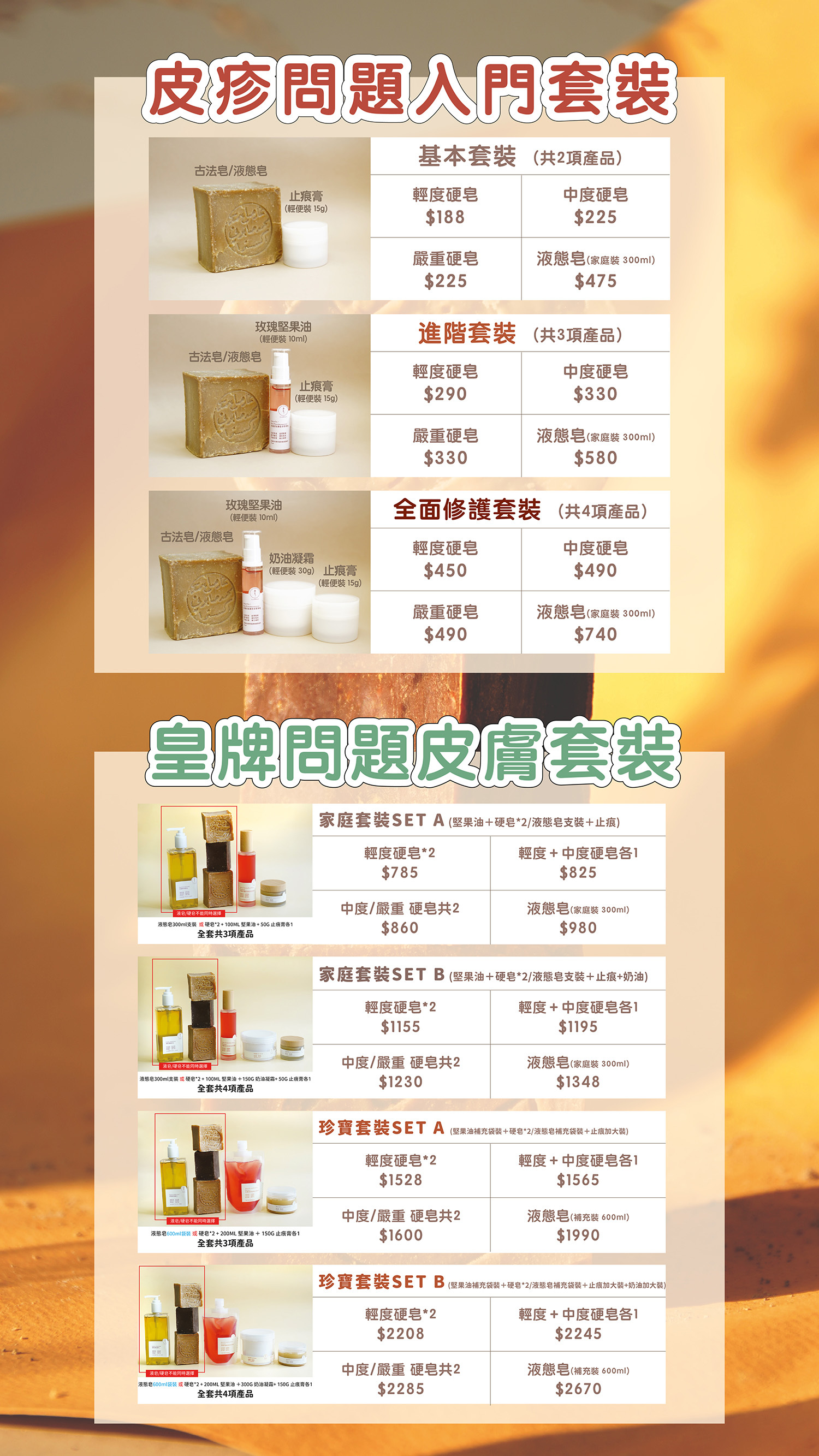 即時了解有關輕度/中度/嚴重 問題皮疹 & 如何點選相應套裝