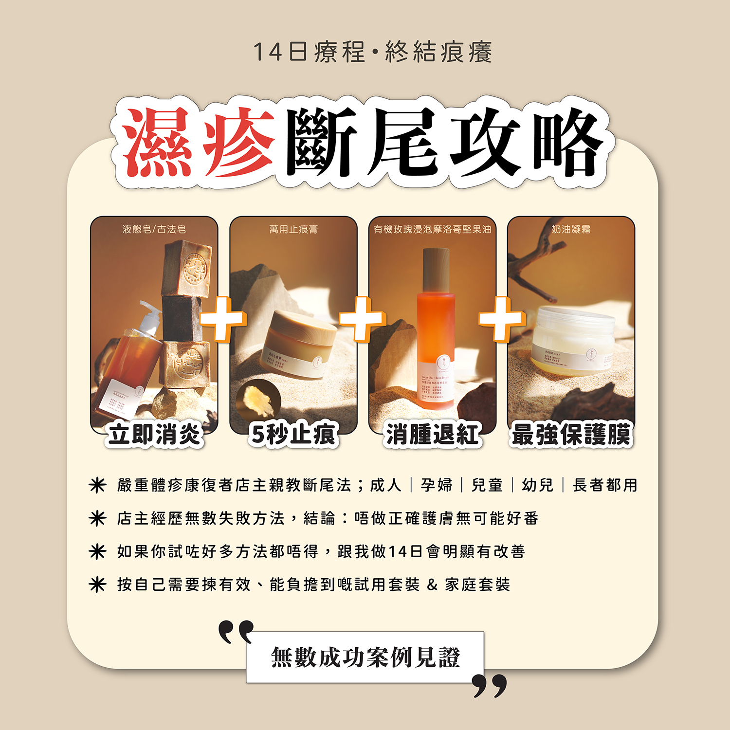#敏感肌請於無疹/較少皮疹位置小面積試用並觀察24小時, 確認沒有過敏反應才大面積使用