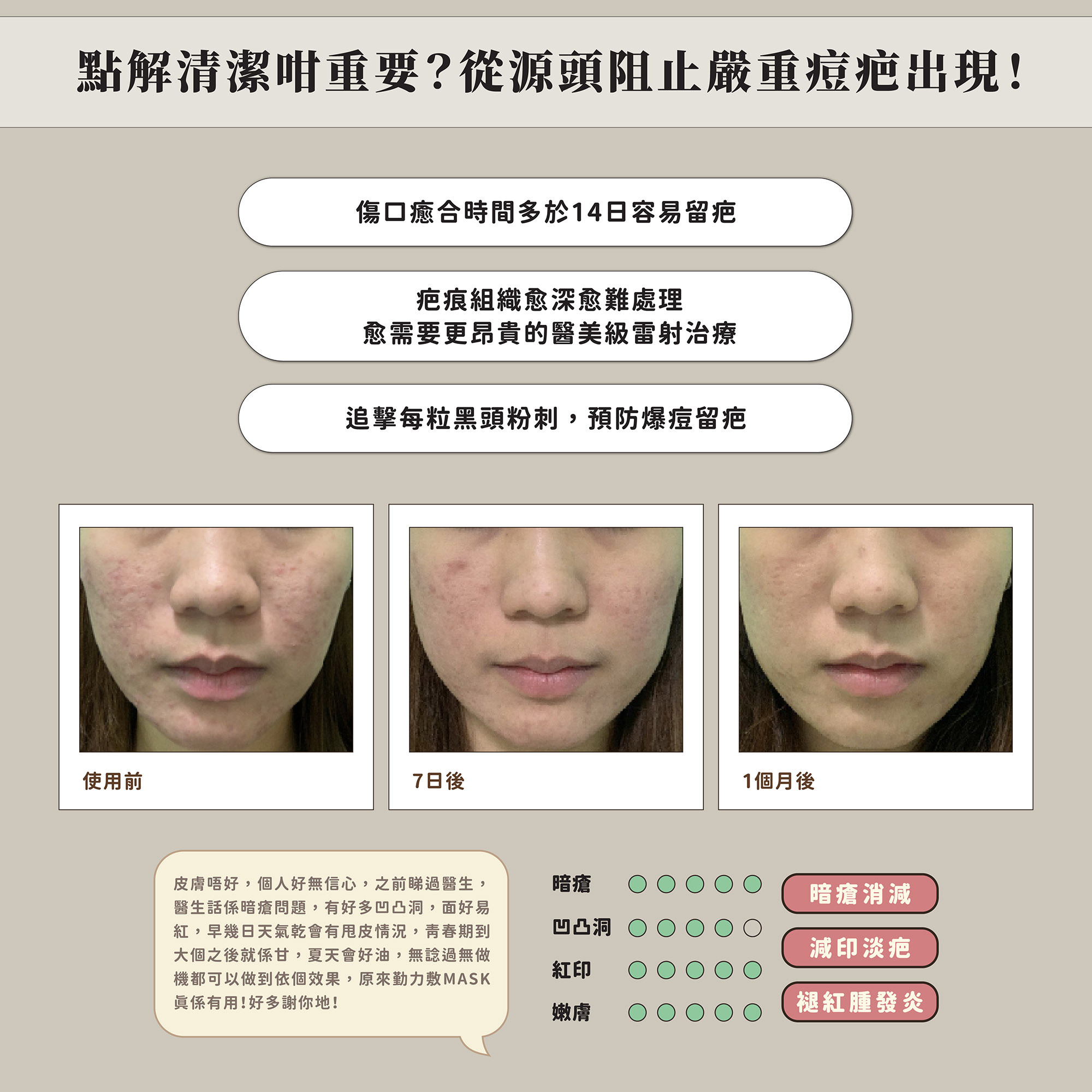 整天滿面油光、毛孔堵塞,全面紅腫發炎生滿暗瘡,潔膚功夫做得不夠,惡性循環下隨時會留下痘印痘疤和難搞的凹凸洞,要徹底復原動輒要花上萬元做醫美級雷射。要皮膚好,又想慳錢慳時間,最有效就是從源頭殲滅黑頭白頭粉刺,及時終結暗瘡種子。