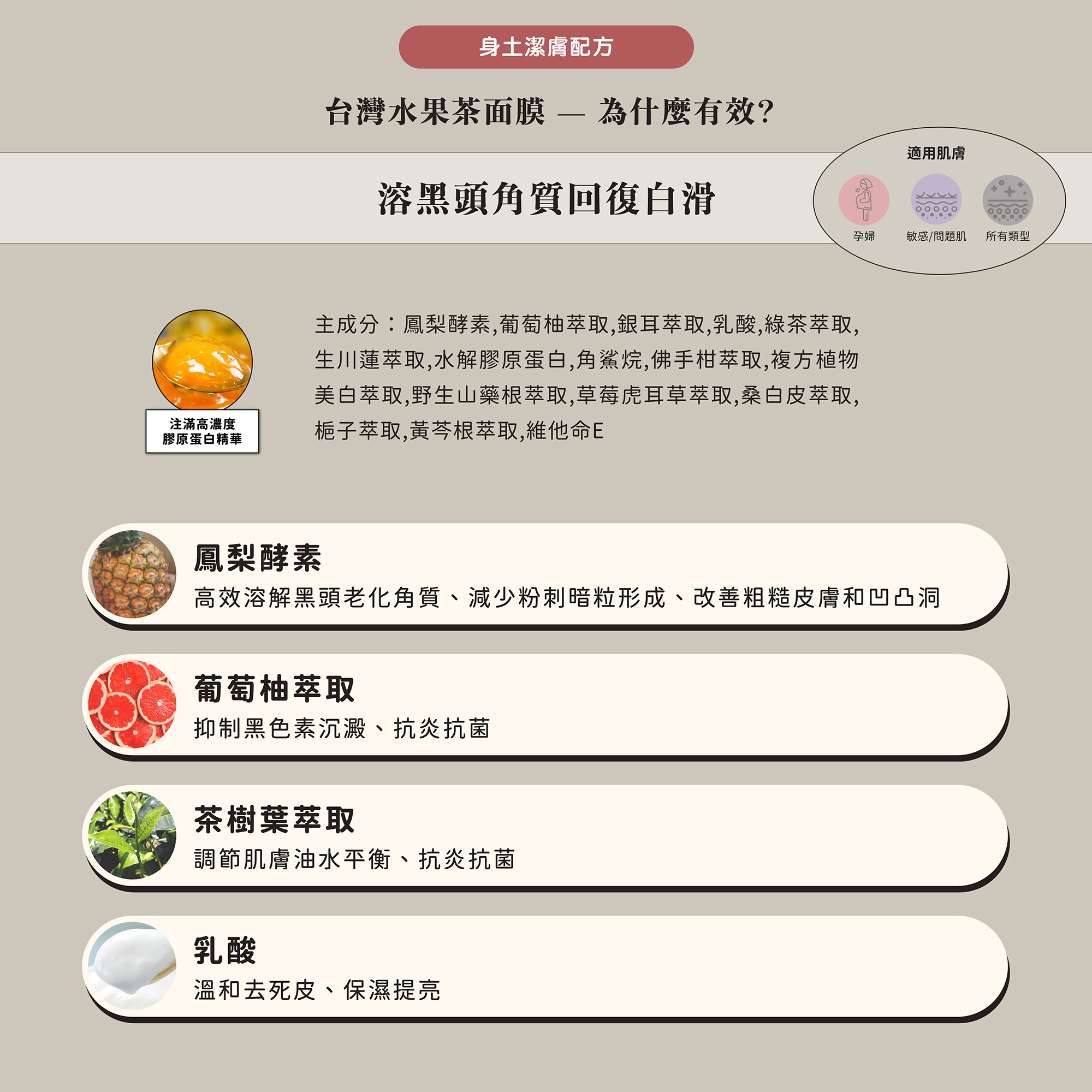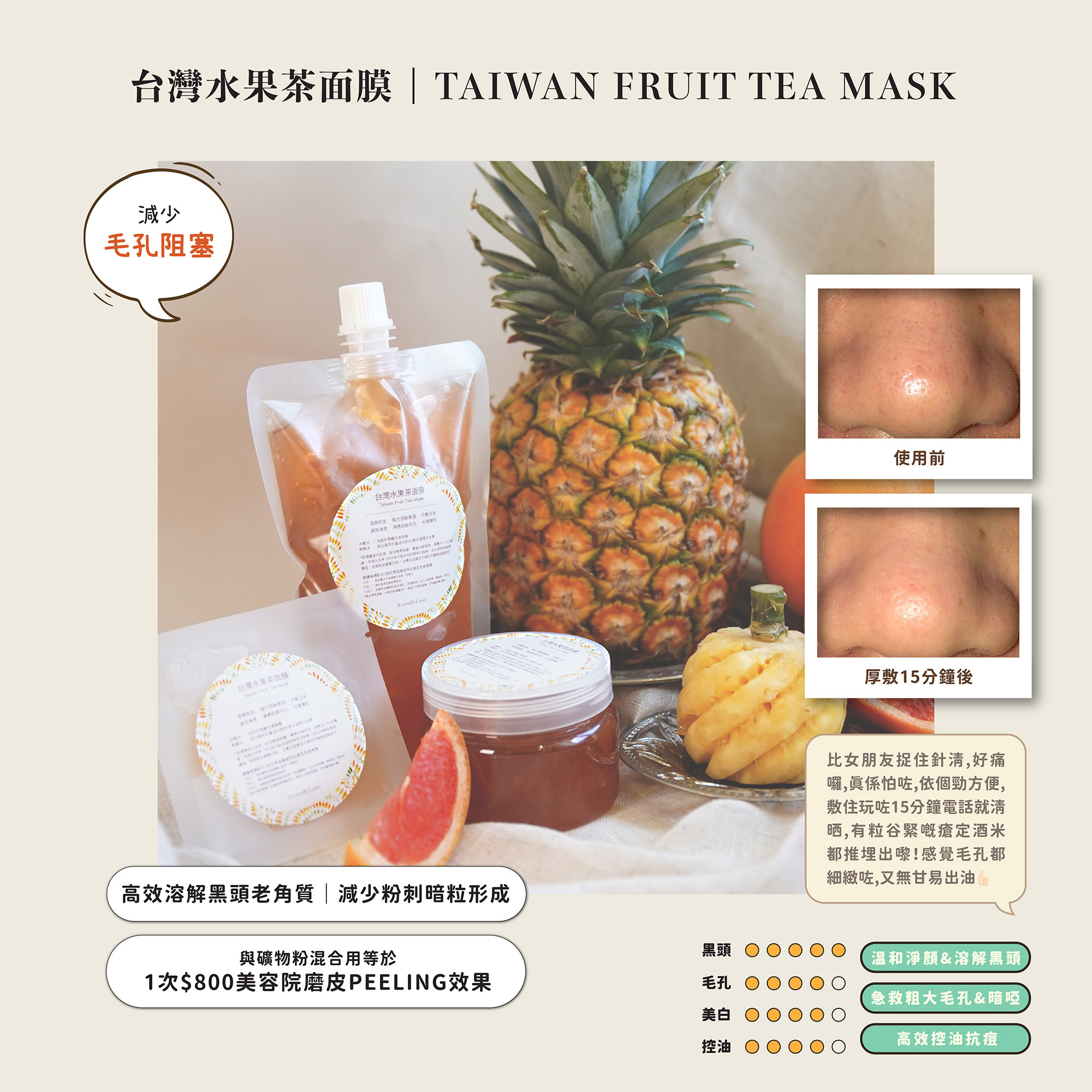 台灣水果茶面膜|溶黑頭角質回復白滑 、改善膚色不均