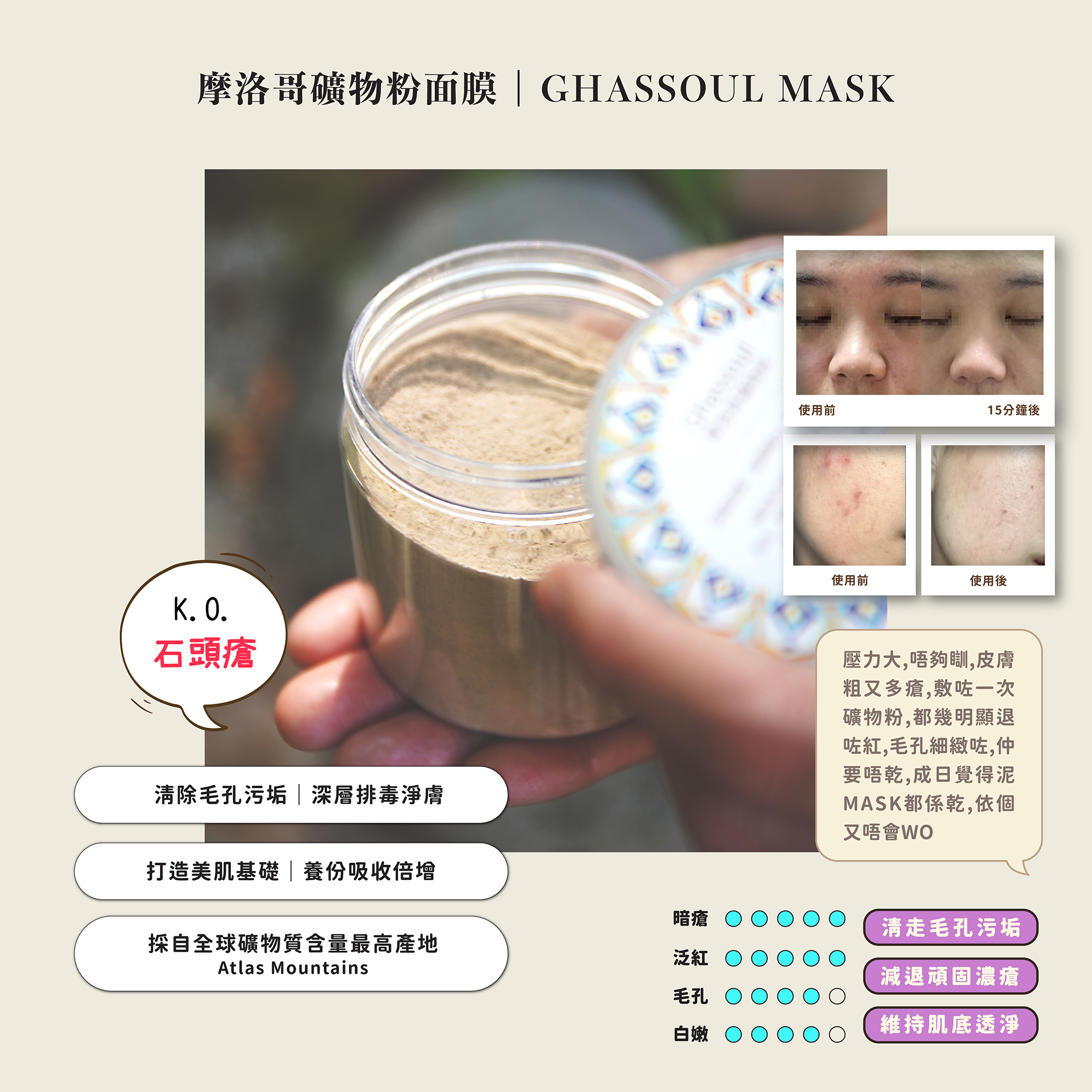 摩洛哥礦物粉|深層排毒潔淨、清走毛孔污垢