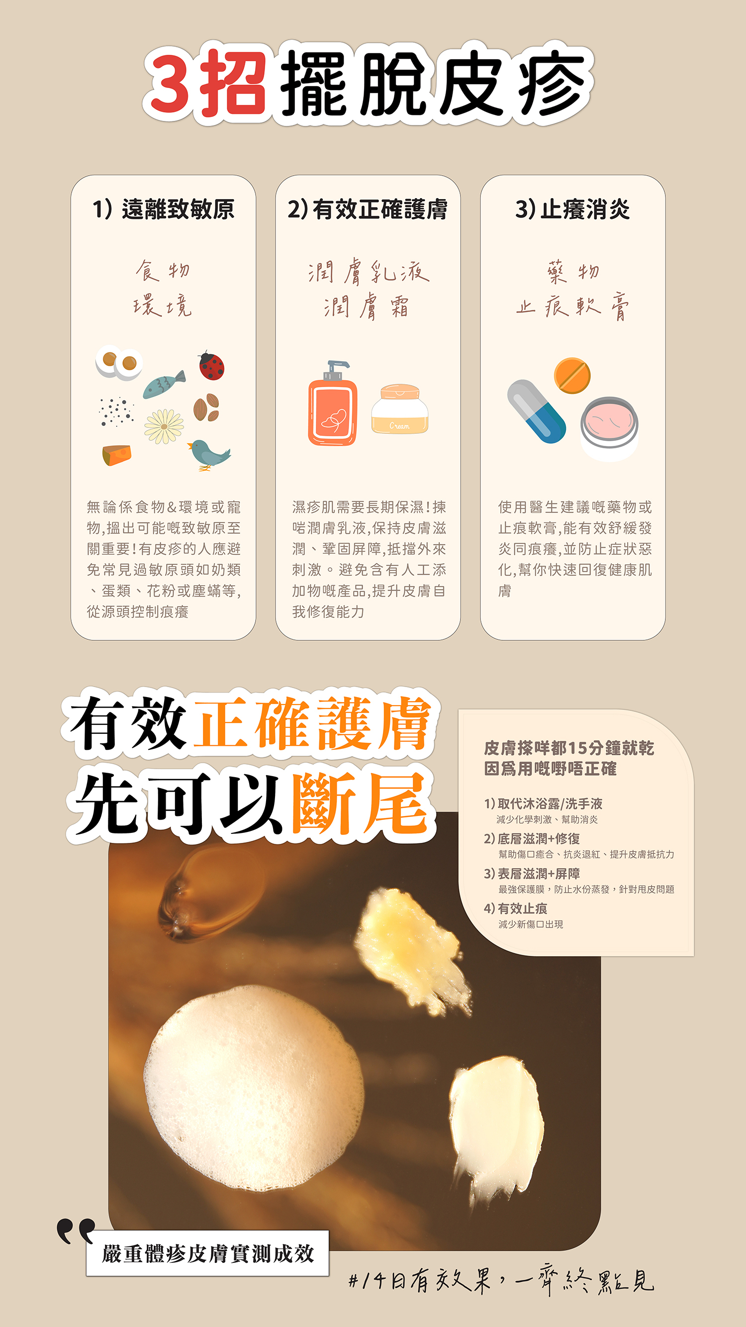 #敏感肌請於無疹/較少皮疹位置小面積試用並觀察24小時, 確認沒有過敏反應才大面積使用