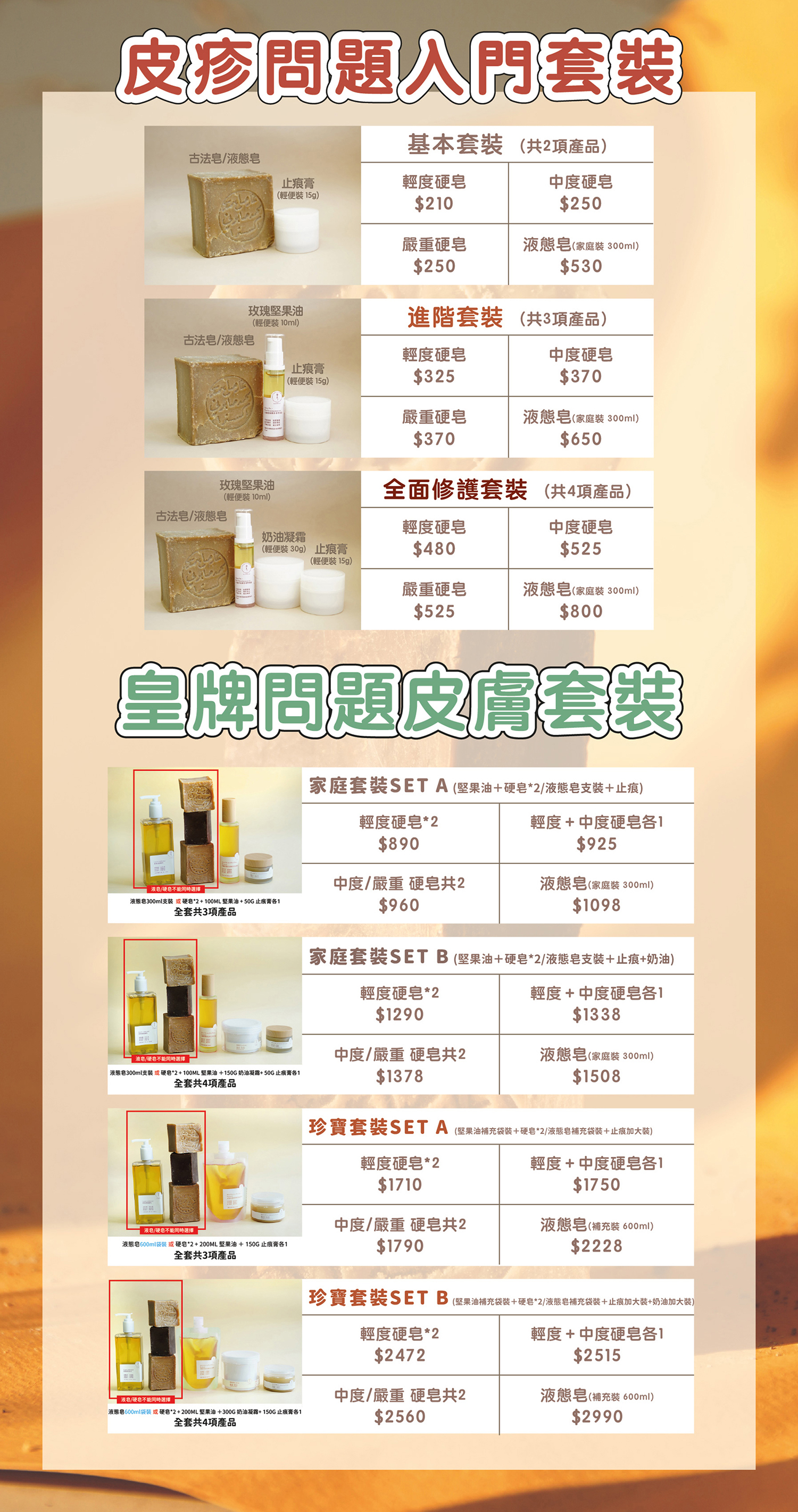 即時了解有關輕度/中度/嚴重 問題皮疹 & 如何點選相應套裝