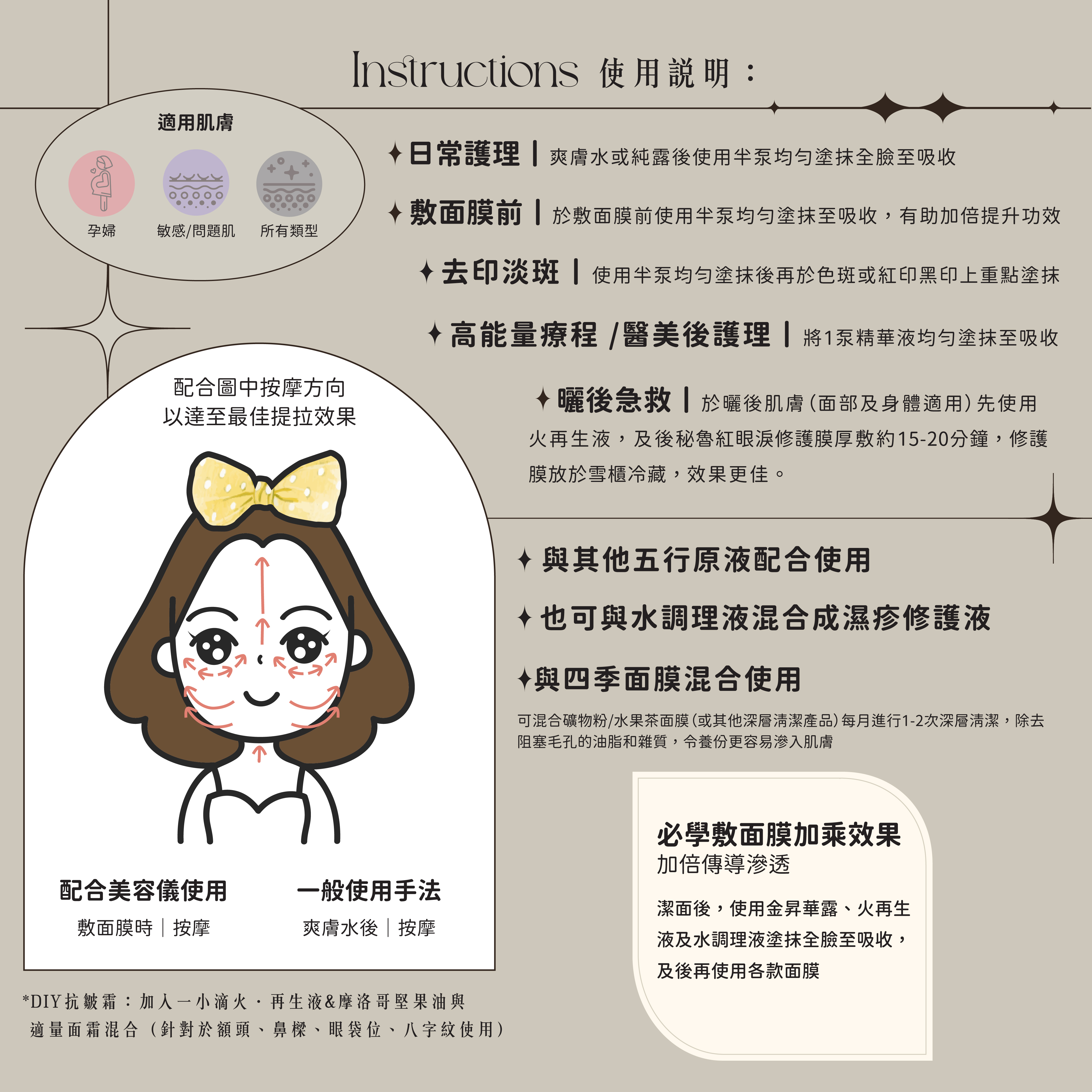 *與其他五行原液配合使用 / 四季面膜混合使用