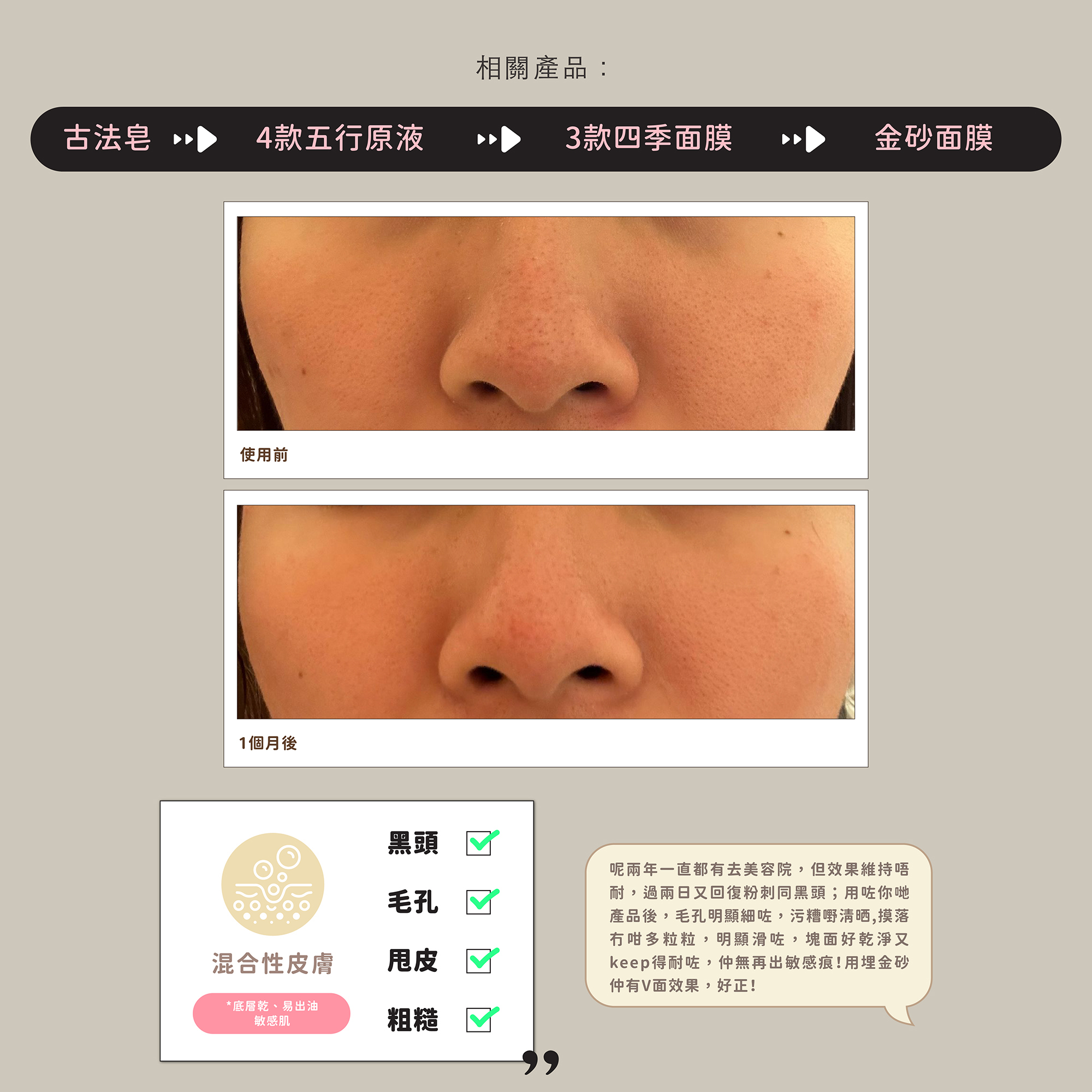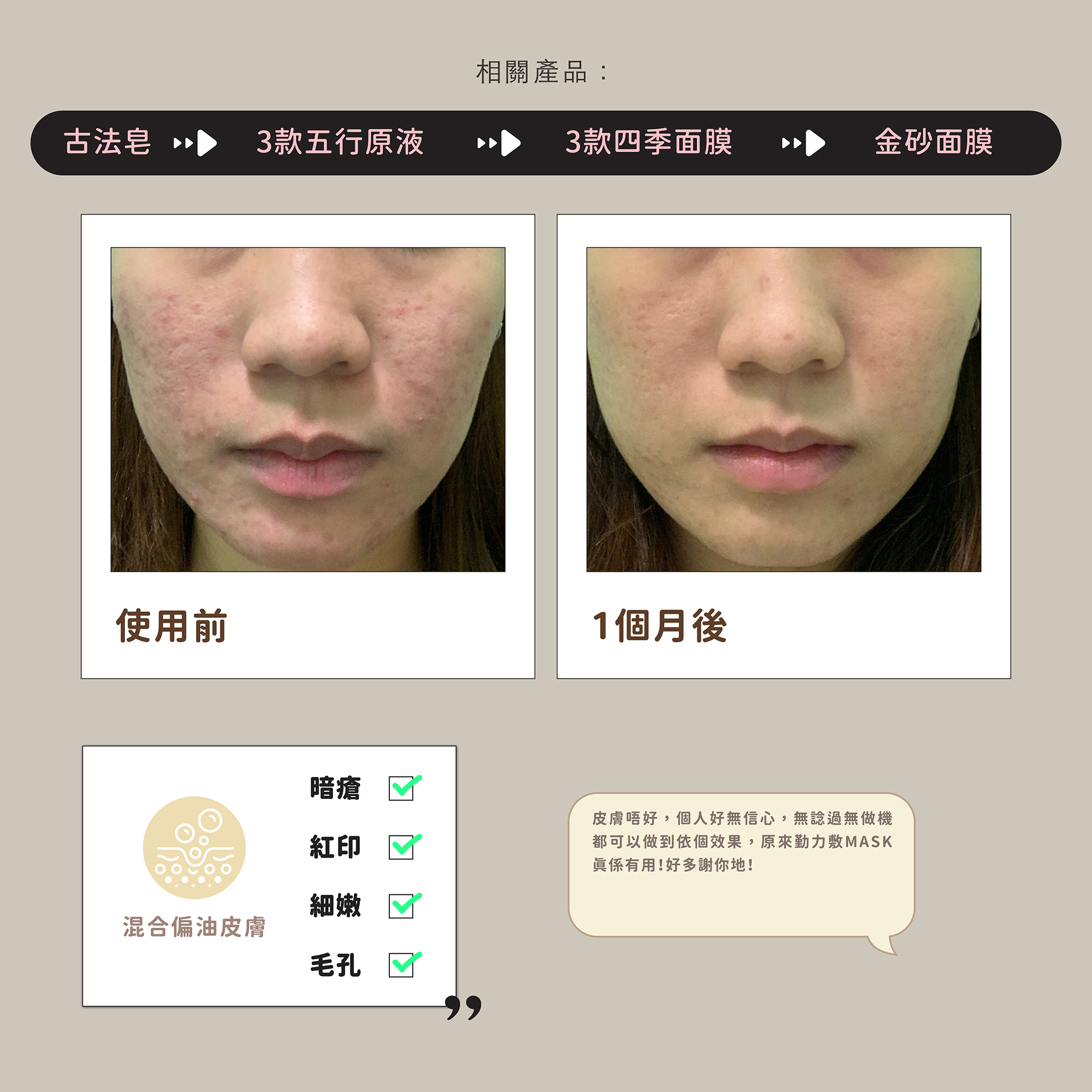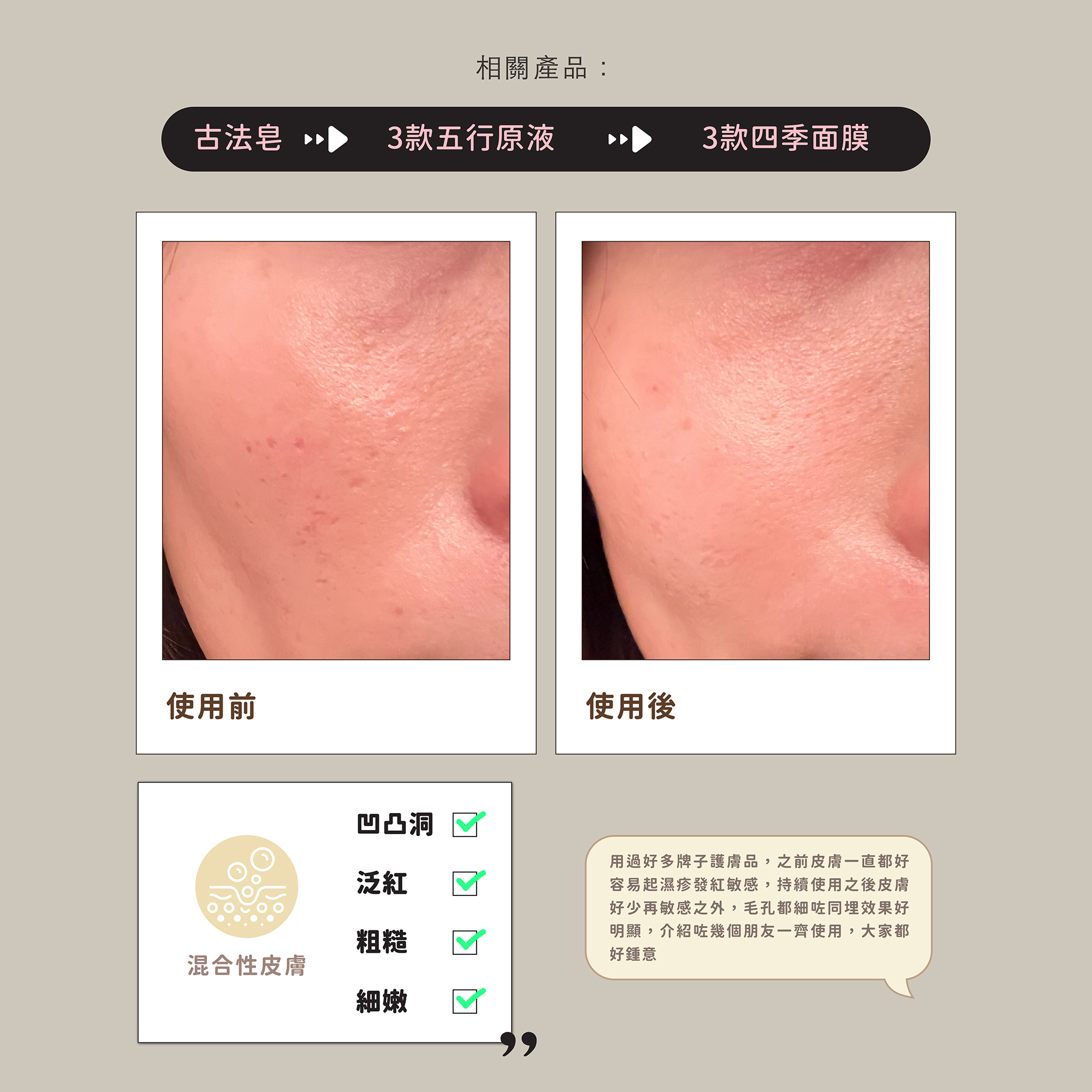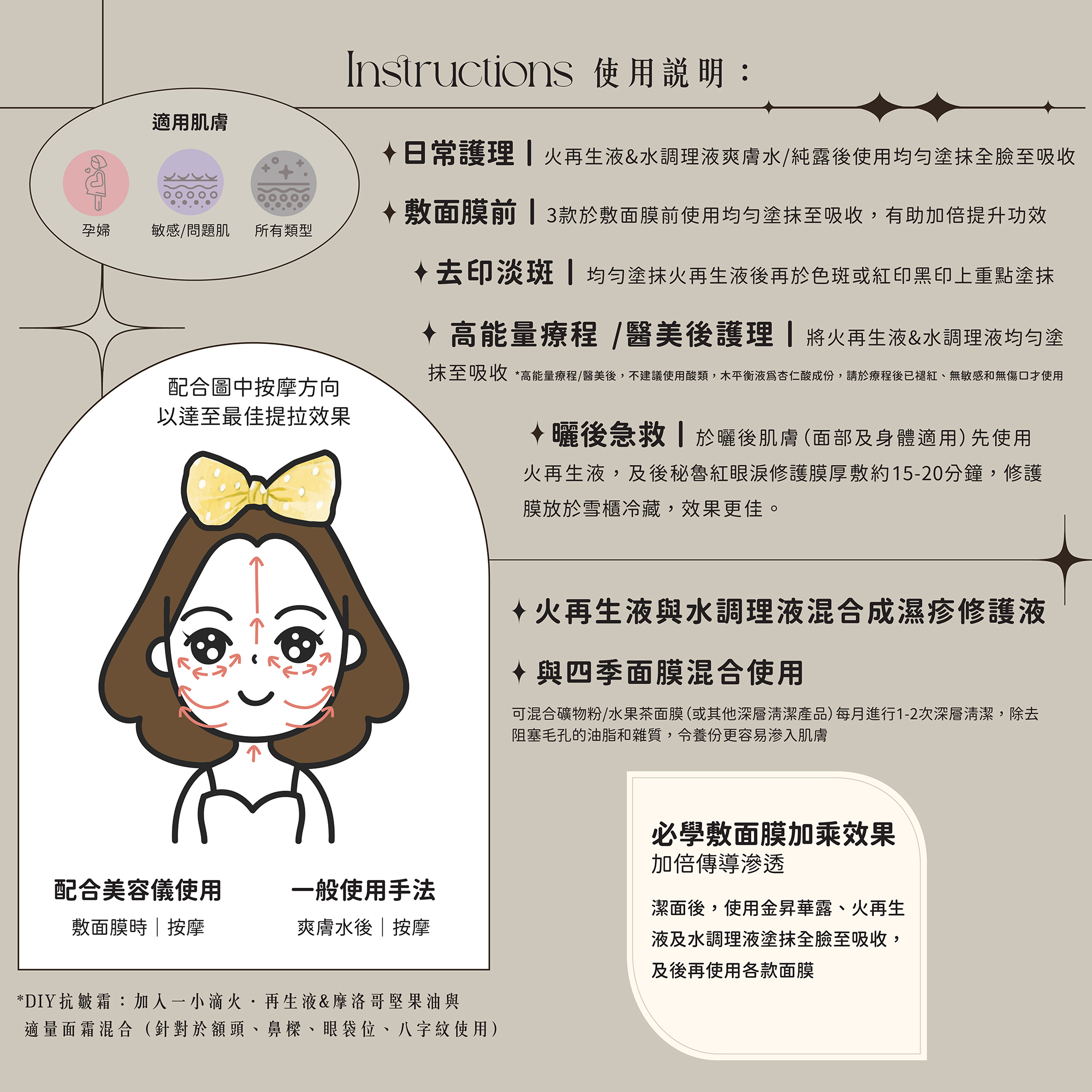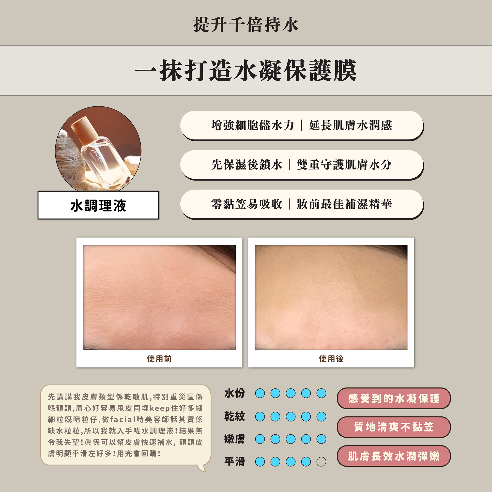 含高濃度膠原蛋白、玻尿酸原液和藻膠精華,可提升皮膚吸水分力,強化真皮層的網狀纖維,令皮膚更有彈性,縮小毛孔,持水力增加高達一千倍