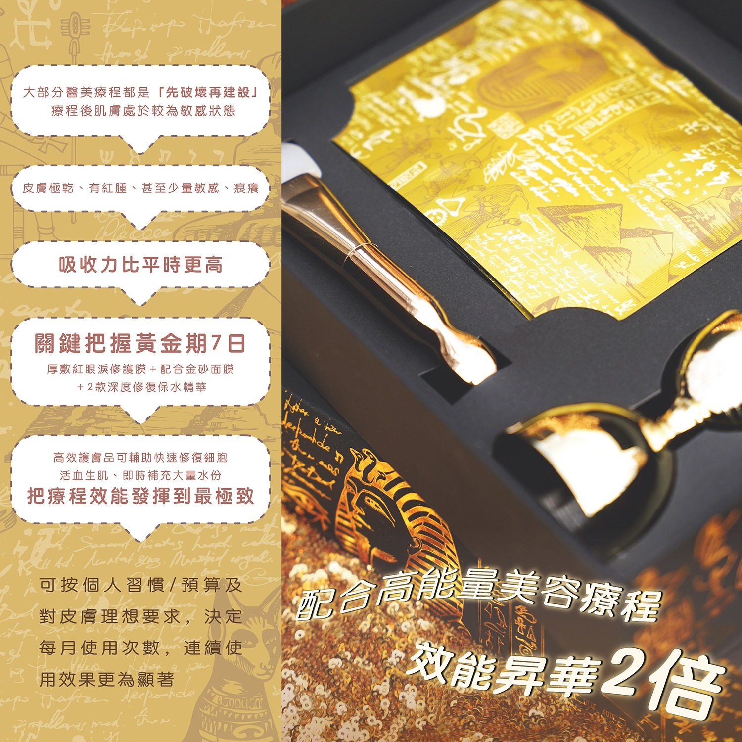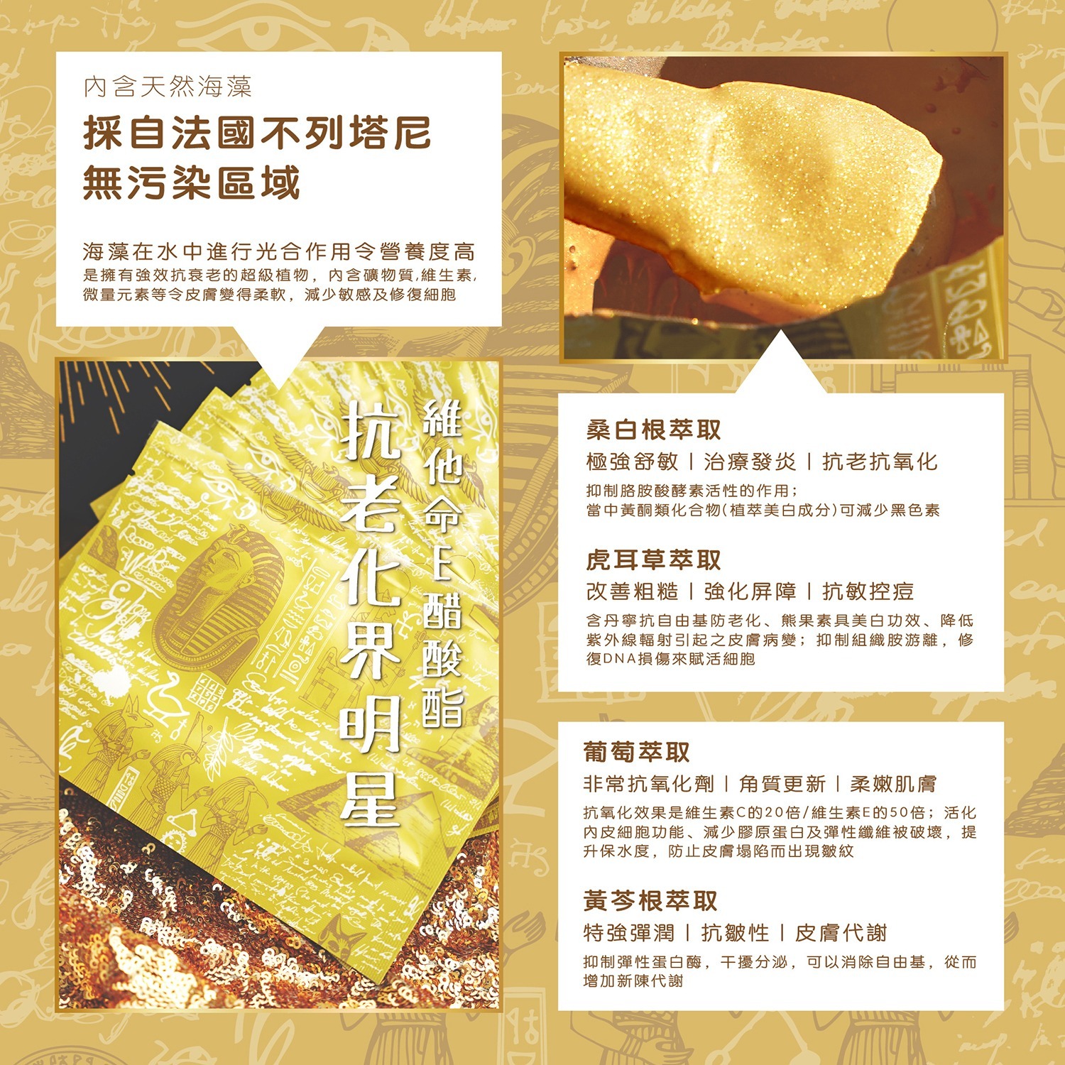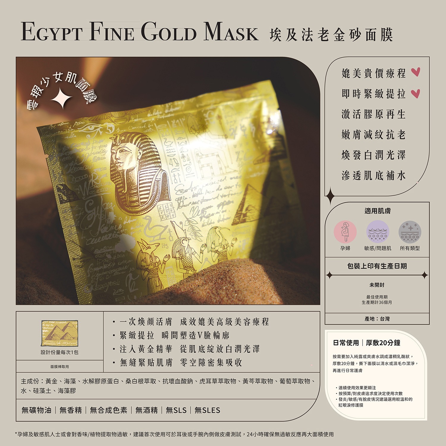 埃及法老金砂面膜丨999純金奢華修護,一次敷出緊緻V顏