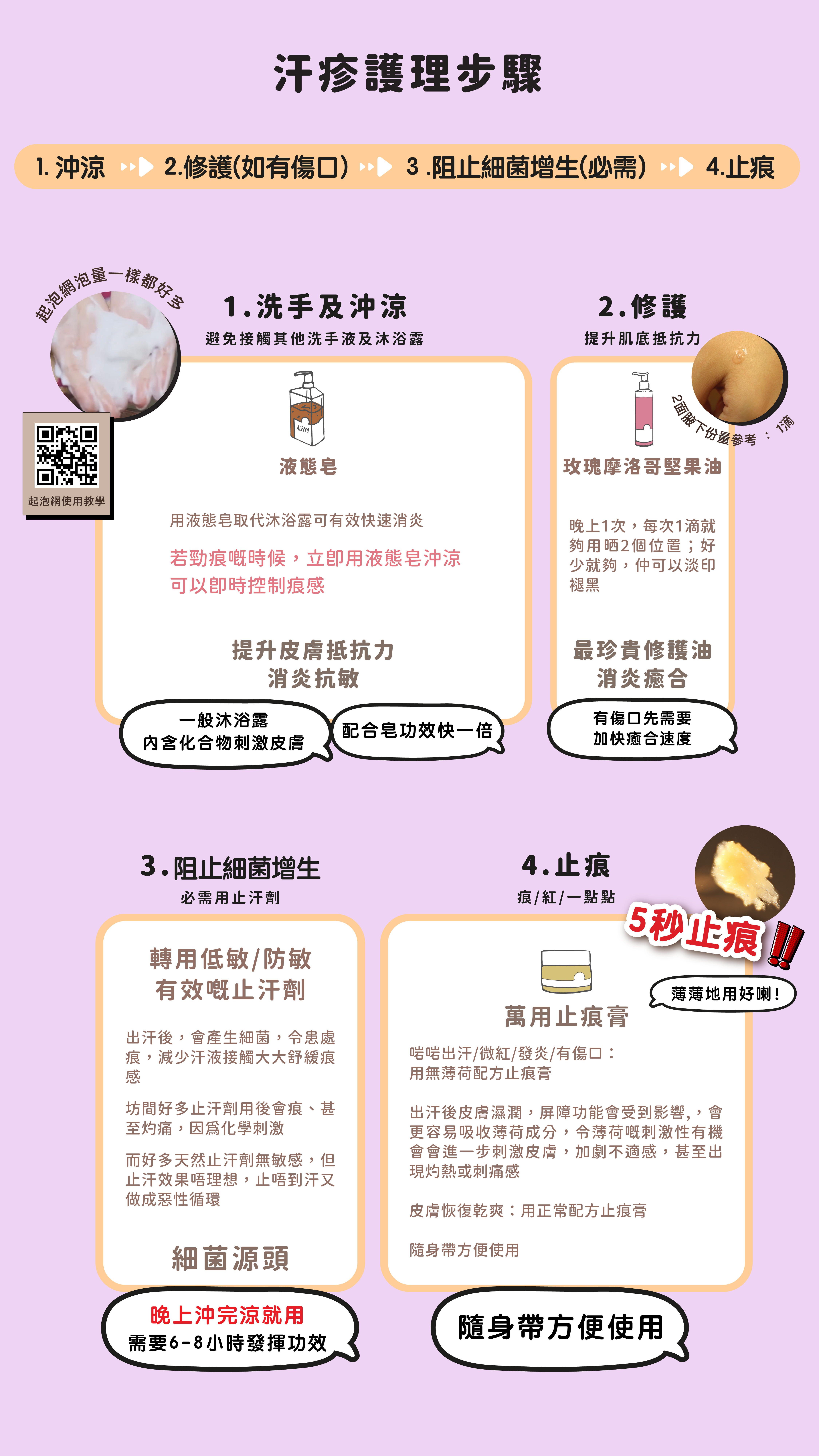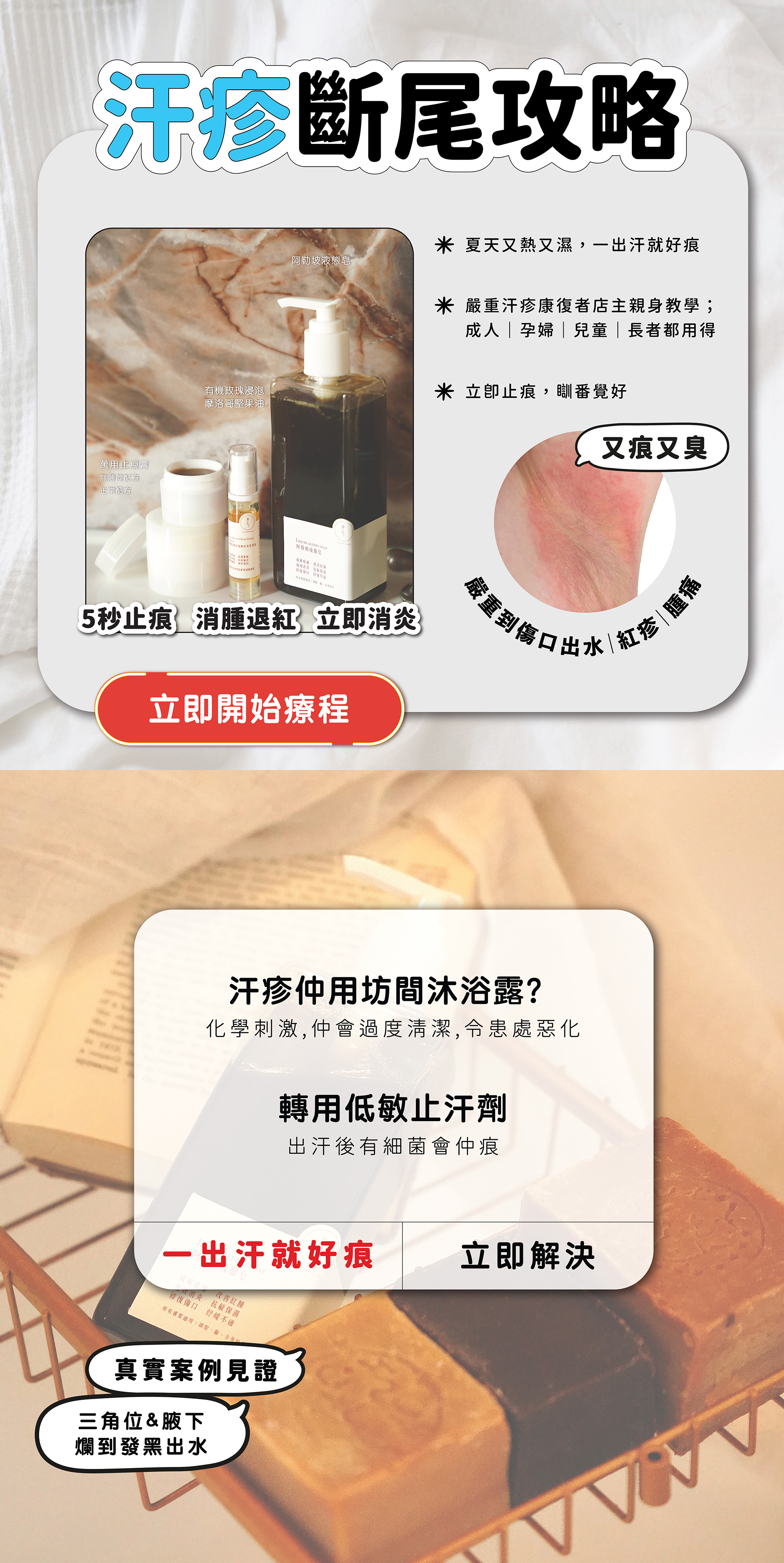 ・患處(腋下 & 三角位 & 胸位 & 摺位)痕癢、紅腫、出血水、患處腫痛