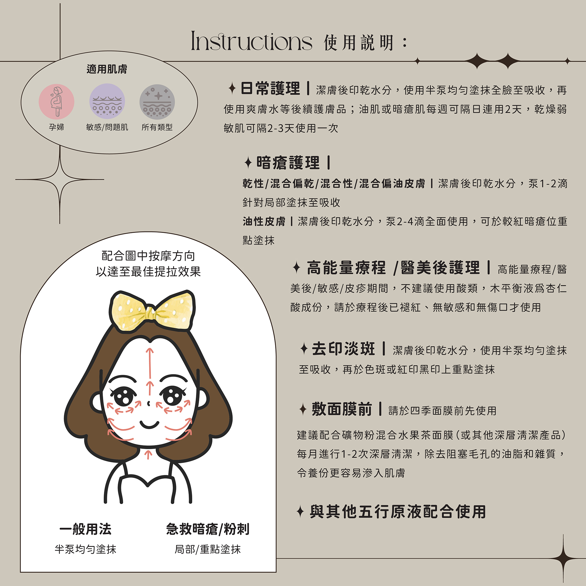 *與其他五行原液配合使用 / 四季面膜混合使用