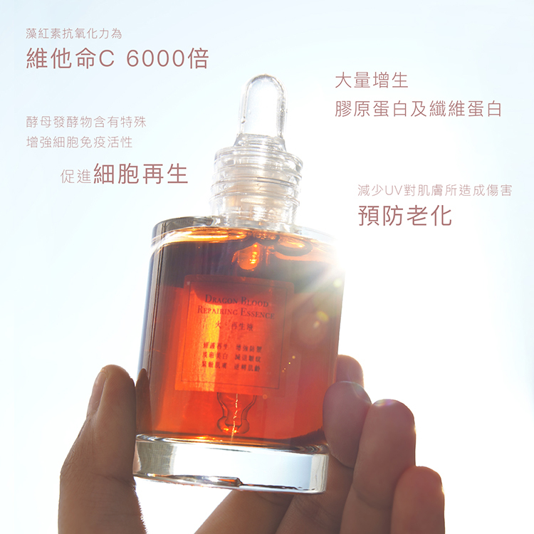 *龍血精華因為含有高濃度植物萃取,顏色會隨時間有所改變,係植萃嘅特性,而使用人工色素調色顏色產品才可以維持長時間不變色
