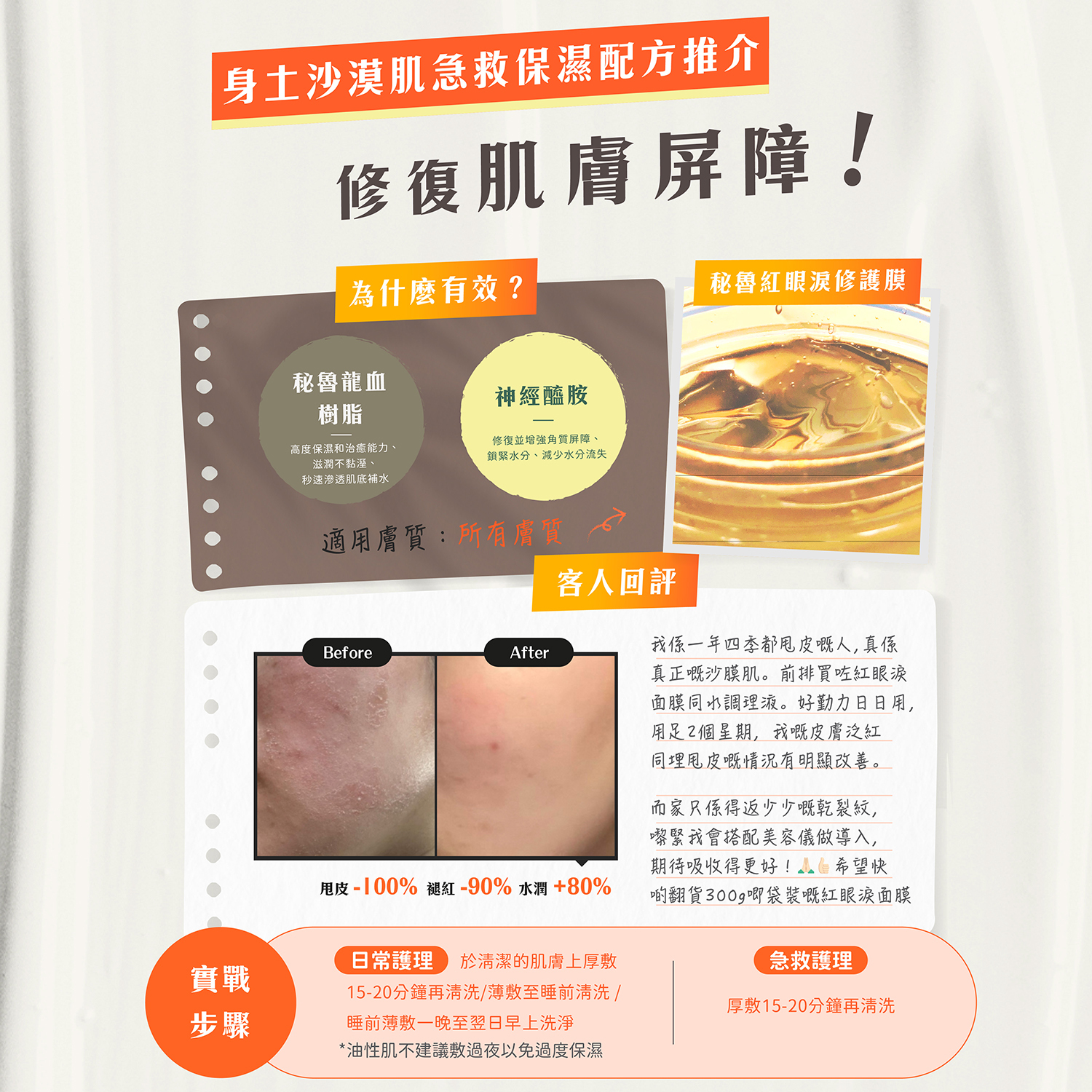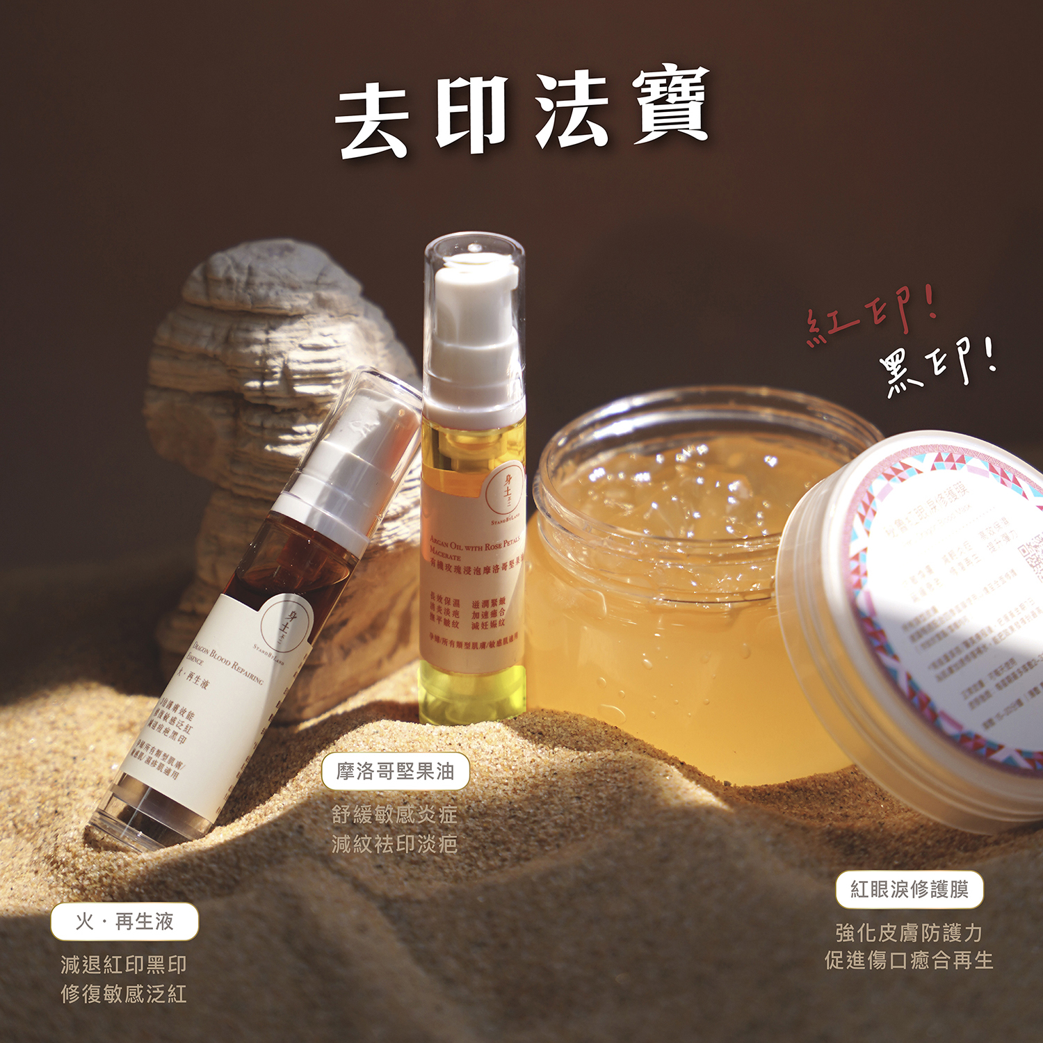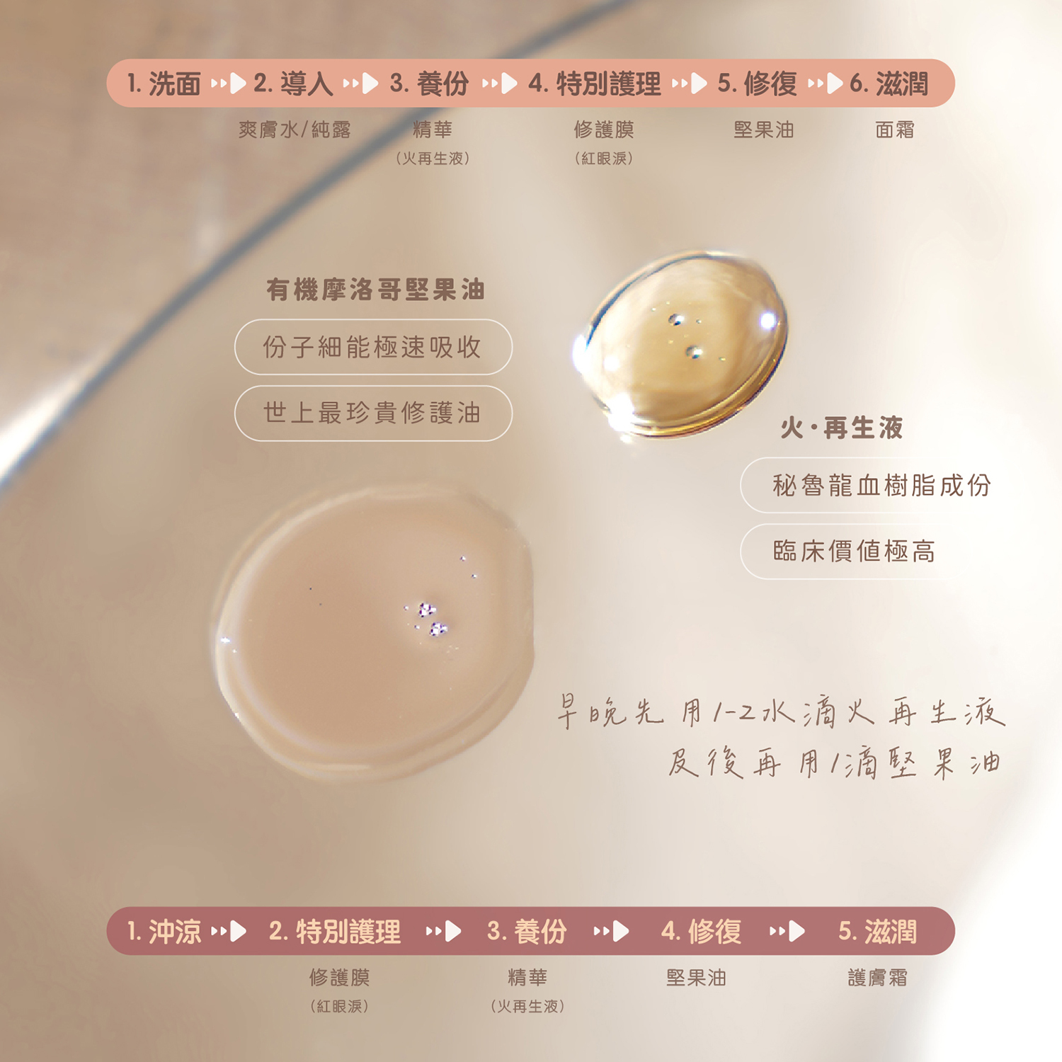 10ml 火再生液 + 10ml 有機玫瑰浸泡摩洛哥堅果油 +150g 秘魯紅眼淚修護膜 各一