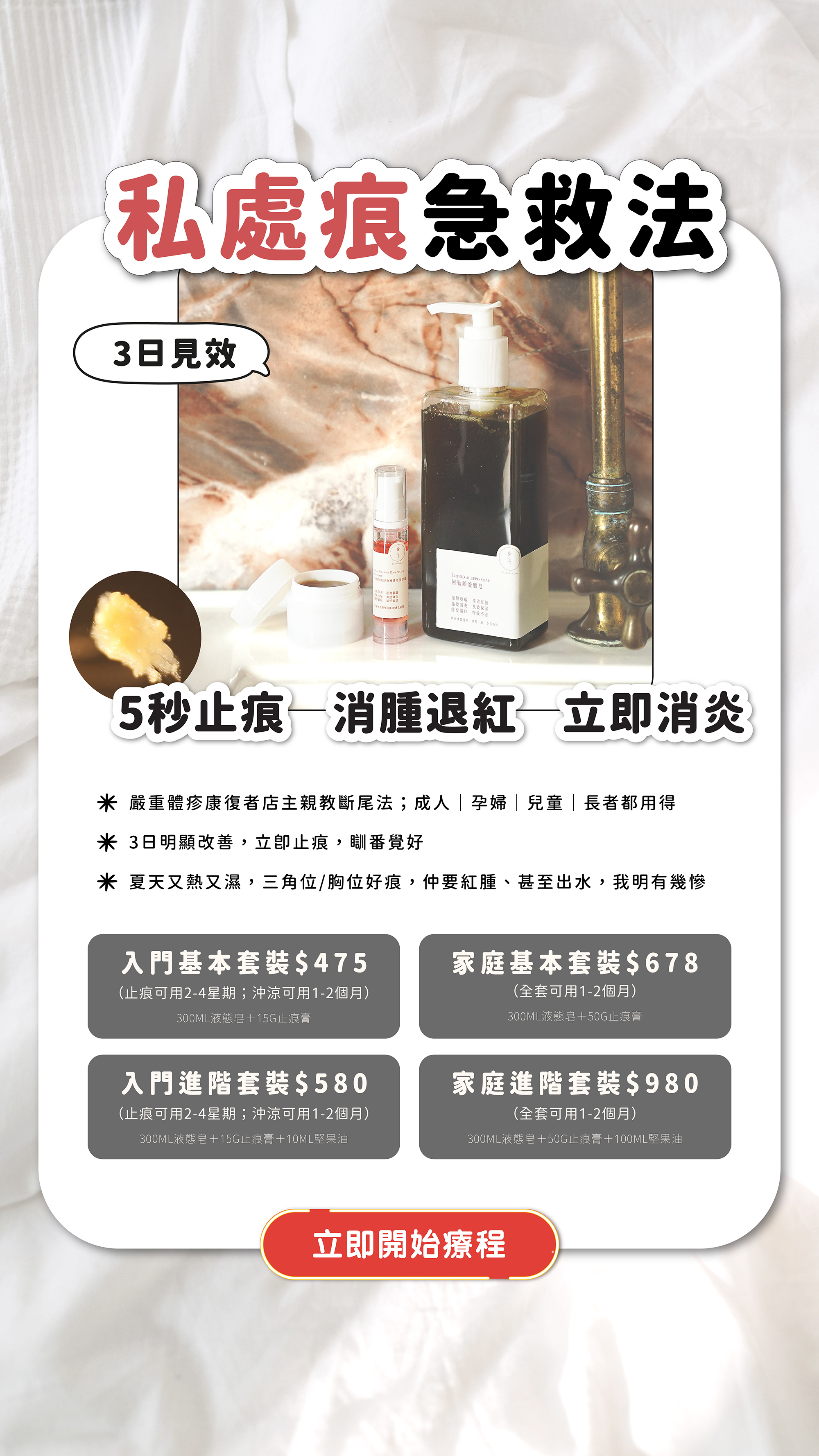 ・配合液態皂快速消炎+止痕膏5秒止痕,3日明顯改善
